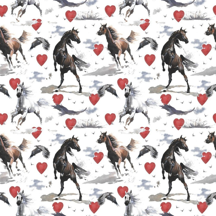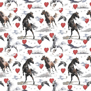 The Wild Horses with Hearts Fabric is part of the Wild Horses Fabric Collection printed by Sewing Parts Online. Digitally Printed on 100% cotton.