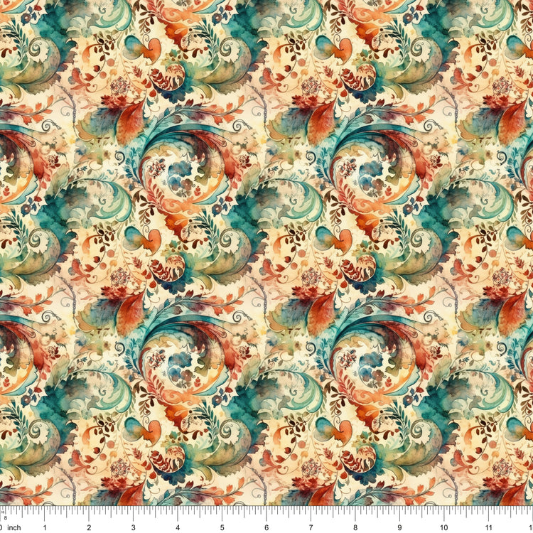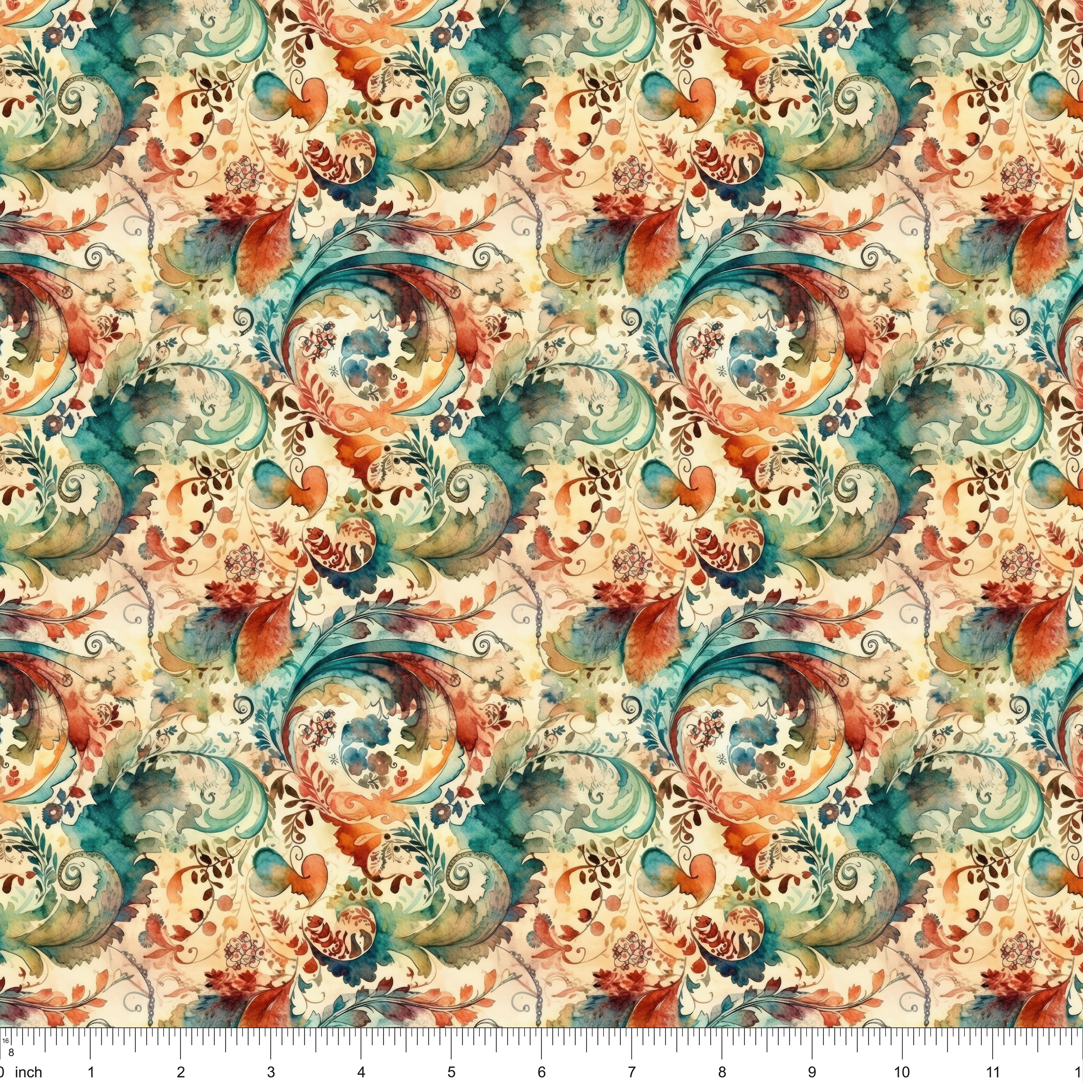 Wild Watercolor Paisleys Pattern #2 Fabric Details