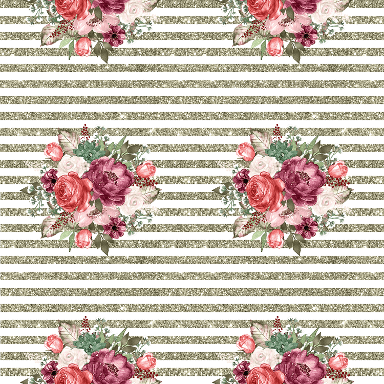 The Champagne Wildflower Bouquets & Stripes Fabric is part of the Champagne & Burgundy Floral Fabric Collection printed by Sew Creative Fabrics. Digitally Printed on 100% cotton.
