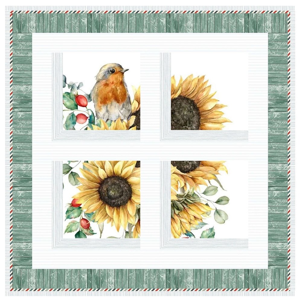 The Window to the World - Robin in my Window Wall Hanging Quilt Kit includes everything you need to make the quilt - the instructions, 1 fabric panel, and a total of 3 1/2 yards of fabric for sashing, flange binding, and backing. Batting is sold separately. The finished size of this quilt is 29 1/2" x 29 1/2".