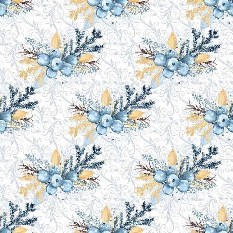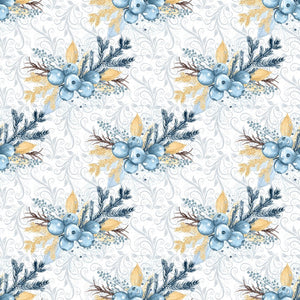 The Blue Winter Berry & Filigree Fabric is part of the Crisp Winter Berry Fabric Collection printed by Sew Creative Fabrics. Digitally Printed on 100% cotton and measures 43-44" wide.