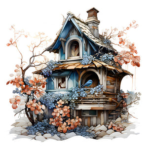Winter Birdhouse Blue Jay #1 Fabric Panel