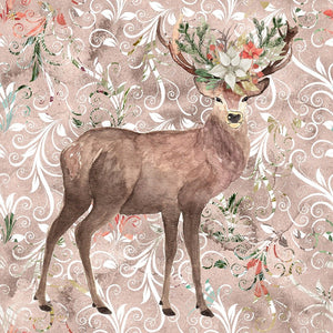 Winter Dreams Floral Deer Fabric Panel - Brown