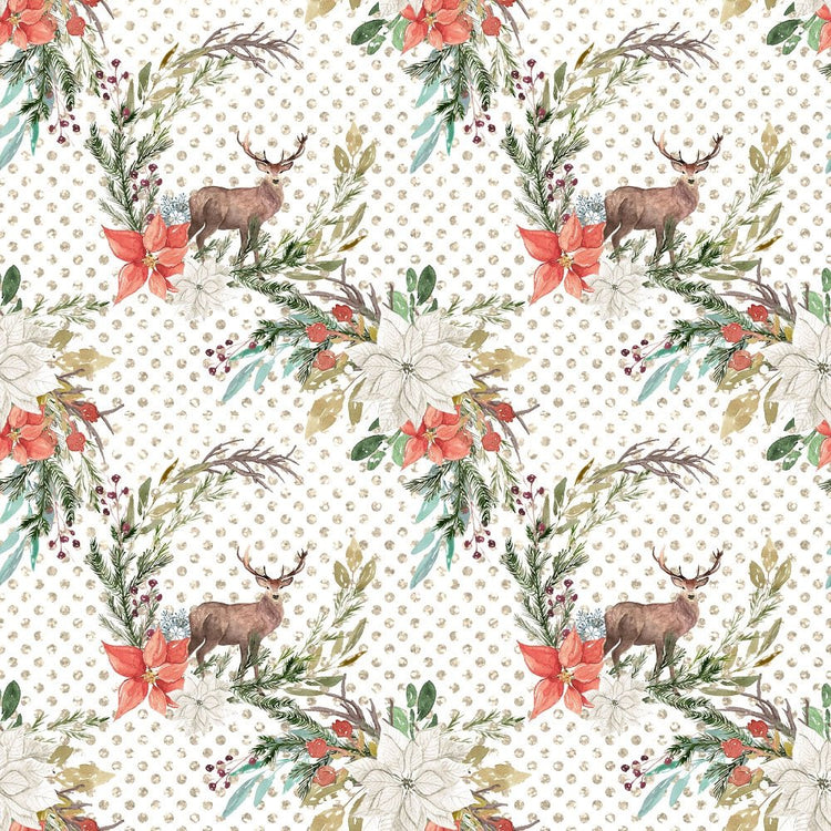 The Winter Dreams Floral Deer on Dots Fabric is part of the Winter Dreams Fabric Collection printed by Sew Creative Fabrics. Digitally Printed on 100% cotton.
