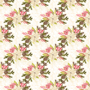 Winter Poinsettias & Filigree Fabric - White
