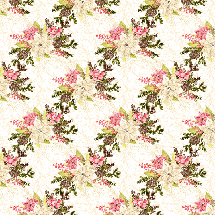 Winter Poinsettias & Filigree Fabric - White Details