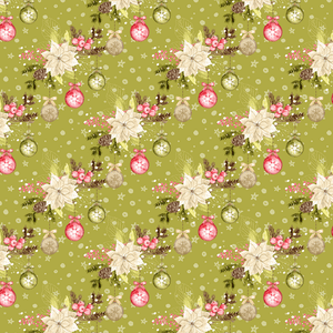 The Green Winter Poinsettias & Ornaments Fabric is part of the Elegant Winter Poinsettias Fabric Collection printed by Sew Creative Fabrics. Digitally Printed on 100% cotton and measures 43-44" wide.