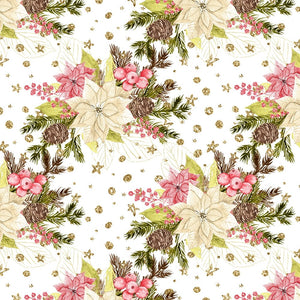 The White Winter Poinsettias & Stars Fabric is part of the Elegant Winter Poinsettias Fabric Collection printed by Sew Creative Fabrics. Digitally Printed on 100% cotton and measures 43-44" wide.