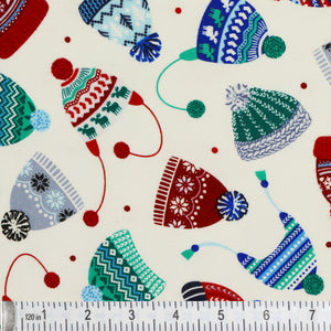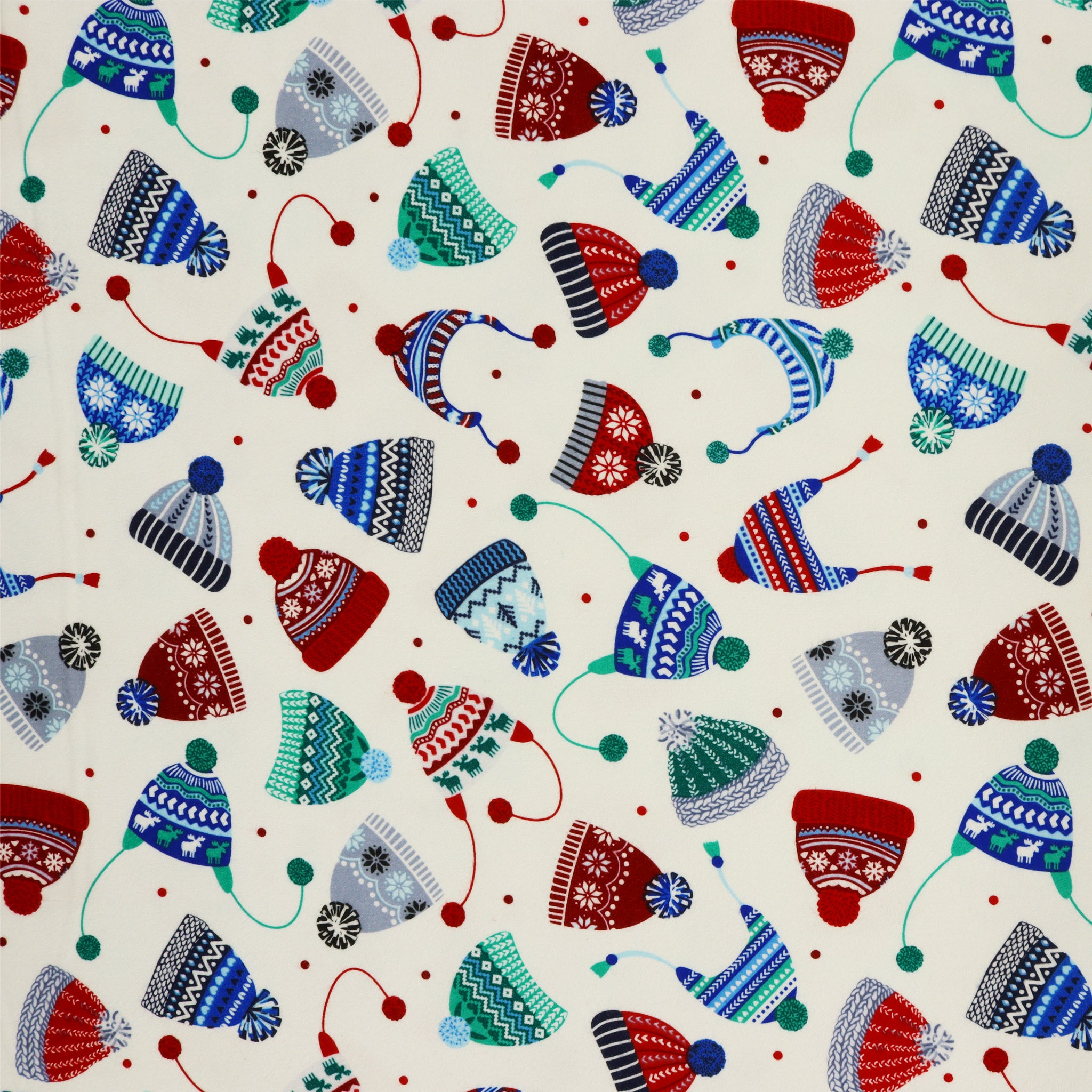 Winter Wonders Flannel Fabric Collection - Cozy Hats White