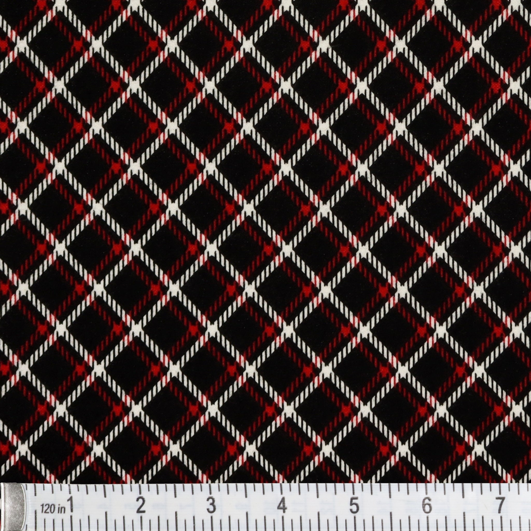 Winter Wonders Plaid Black blends modern contrast with a touch of nostalgia. With rich black as the base, bold red and crisp white lines form a dynamic plaid pattern that evokes classic winterwear and cabin coziness. Ideal for quilt backings, flannel-style accents, or rustic holiday decorations, this versatile plaid adds depth and drama to any cold-weather creation.