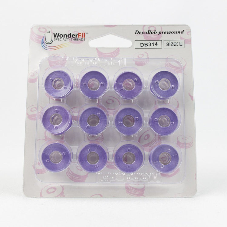 DecoBob plastic bobbins are reusable and free of glues and other adhesives to prevent build-up in the bobbin case and machine. Each pack of L Style DecoBob Prewound Bobbins comes 12 to a box and contains 110-yards of thread on each bobbin. Choose from a variety of colors or select the master pack that includes one of every color.