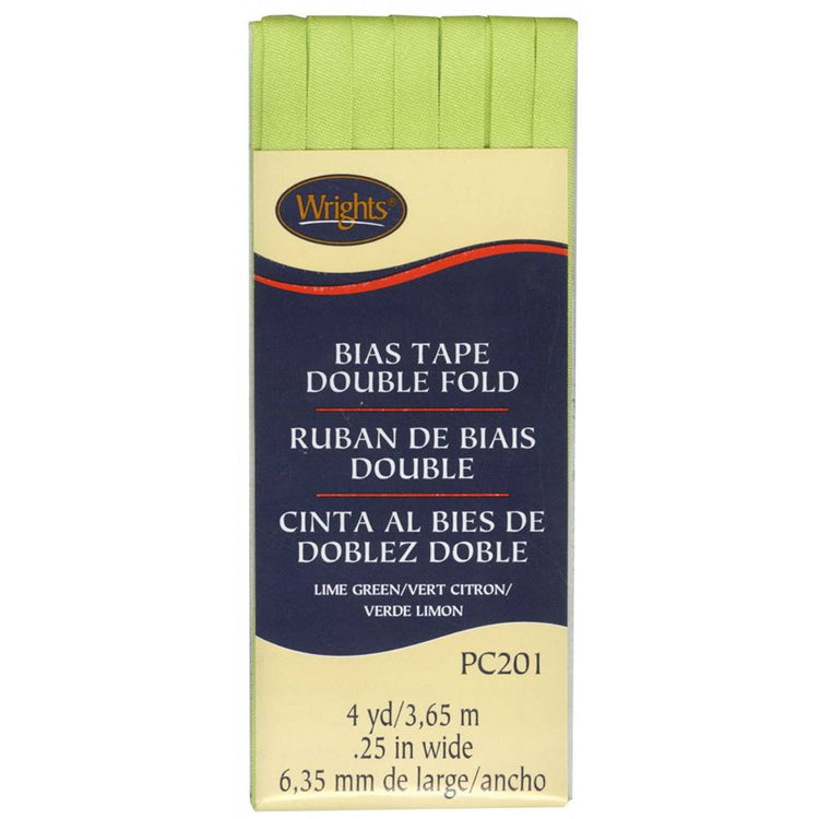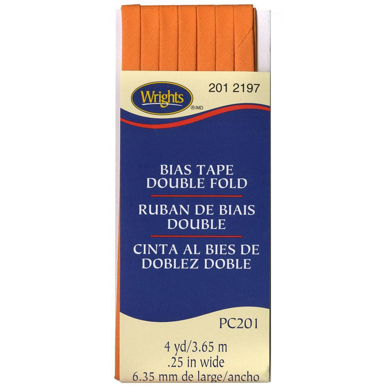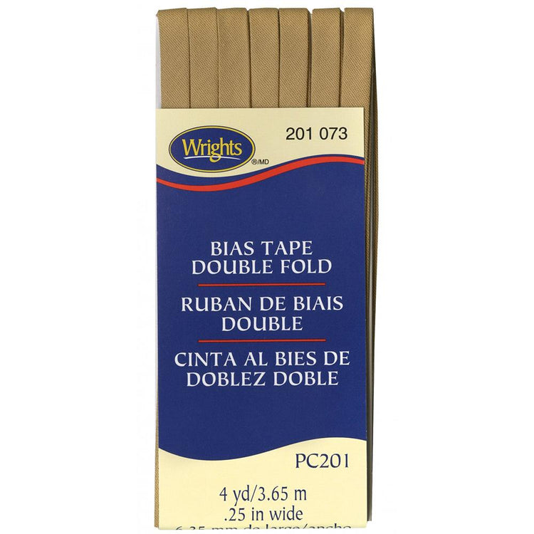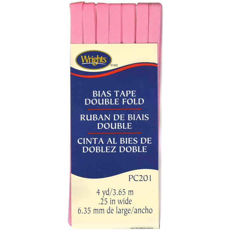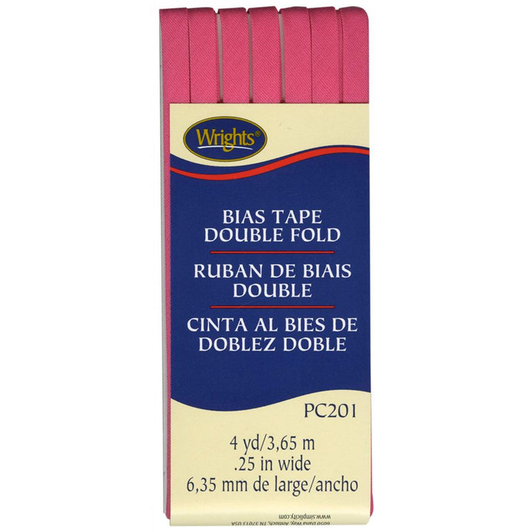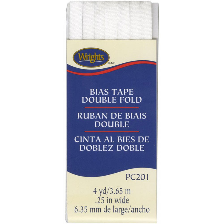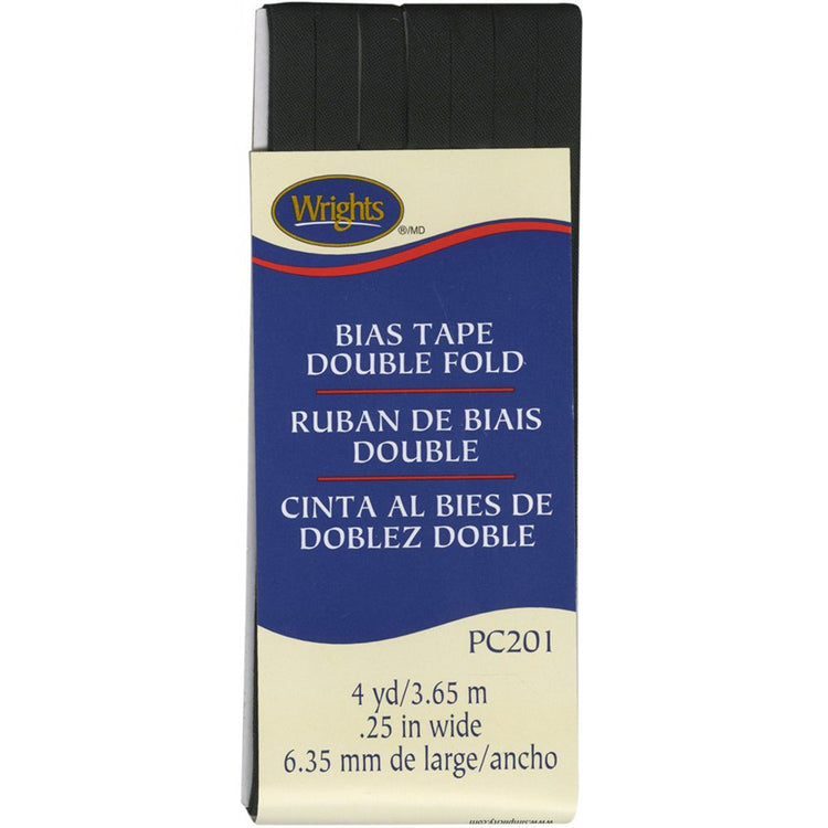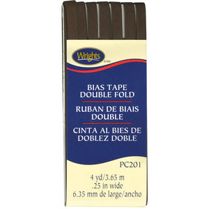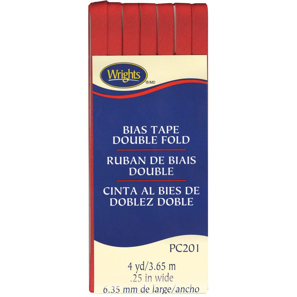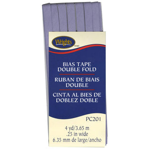 Wright's Double Fold Bias Tape is a staple in every quilter's toolbox. You can use it on straight or curved edges in quilts, apparel, or crafts. This tape has both practical and decorative uses and gives every project a professional finish. Made of 55% polyester and 45% cotton, this double folded bias tape is machine washable and colorfast. Each pack contains 4-yards of 1/4" tape. Available in various shades and colors.