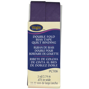 Use Wrights Double Fold Bias Quilt Binding to finish quilts, add color accents, and more to your projects. You can easily bind straight or curved edges. This 55% polyester and 45% cotton binding is colorfast, easy to care for, and needs no ironing. Each pack contains three yards of 7/8" wide binding.