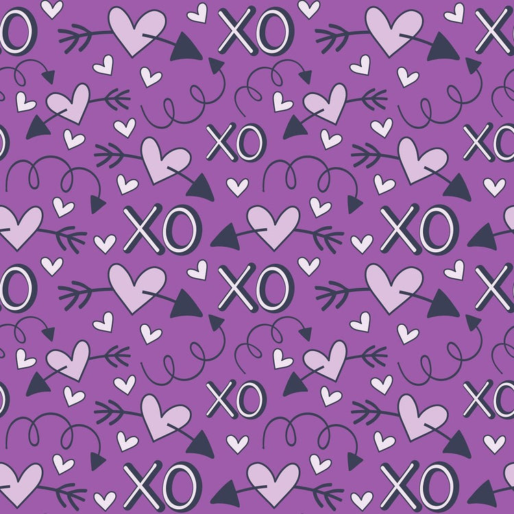 The Purple XOXO Hearts Pattern 11 Fabric is part of the XOXO Hearts Fabric Collection printed by Sew Creative Fabrics. Digitally Printed on 100% cotton.