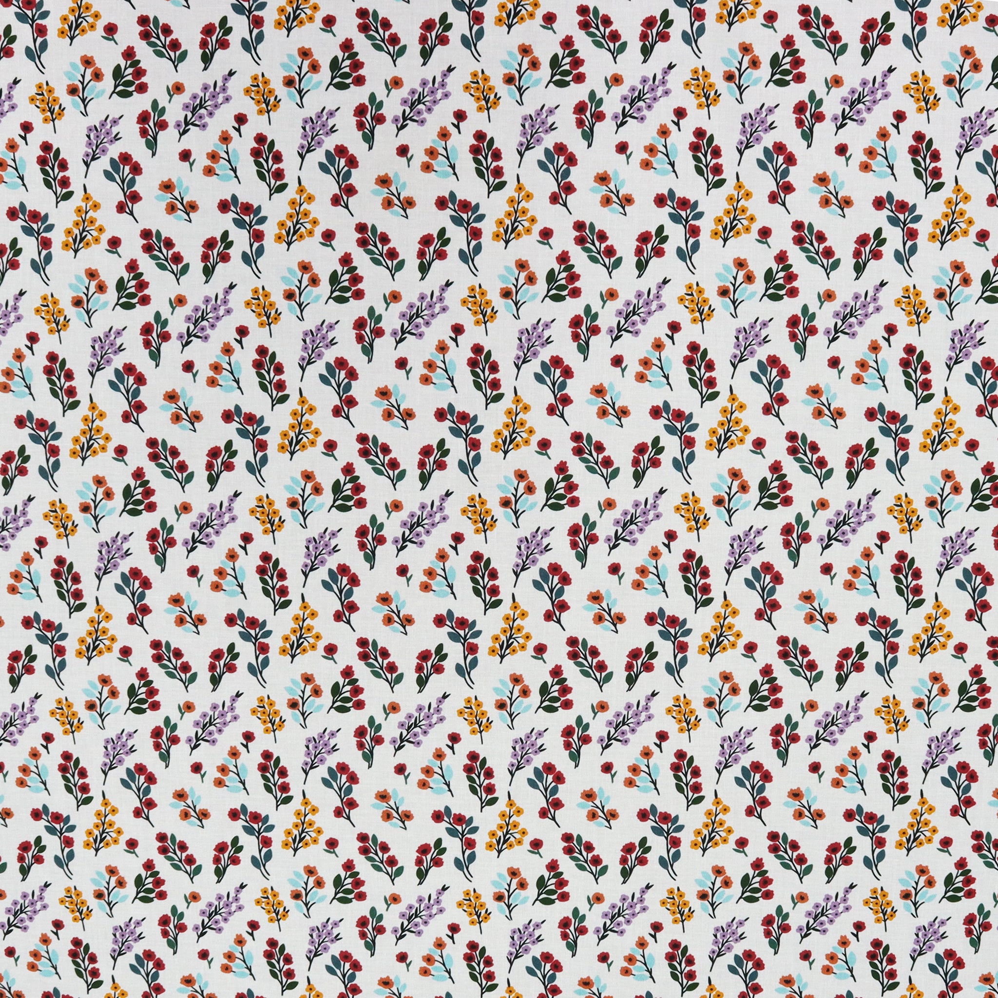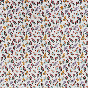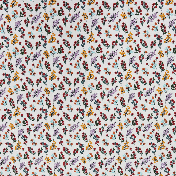 Bring a playful garden vibe to your sewing projects with the Tiny Flowers fabric pattern. This cheerful design features petite floral sprigs in red, yellow, lavender, and soft aqua scattered across a crisp white background. The layout is both whimsical and orderly, with each bloom carefully illustrated to create a sweet and balanced repeat. Whether you're crafting cheerful quilts, lively home accents, or darling apparel, this charming floral print adds just the right touch of color and delight.