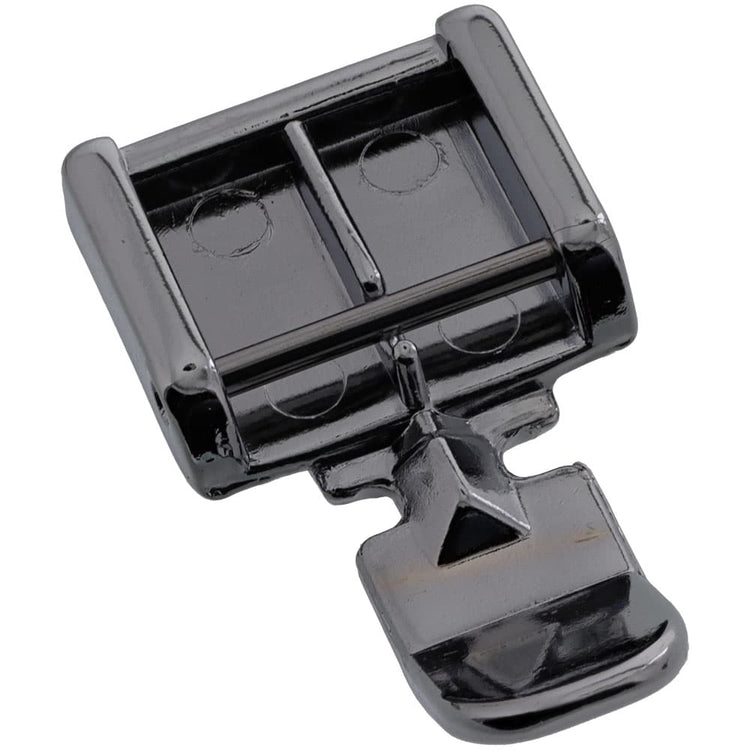 This is the best sewing foot for inserting zippers, snap tape, and more. The toe of the foot is narrow for more visibility and precision. Adjust the needle to either the right or left to sew both sides of your zipper easily. You can also use it to attach piping or decorative cording.
